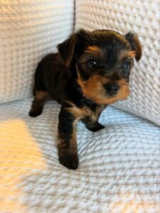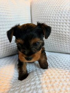 Teacup Yorkies are known for their big hearts in small bodies. She’ll stay petiteβ€”just 2 to 4 lbs when fully grownβ€”and will make the most loyal, comforting companion. Whether you’re looking for a lap warmer, a travel buddy, or even an emotional support friend, she’s ready to be a cherished member of your family.